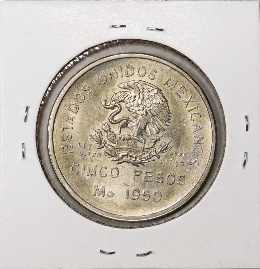 1950 Mexico 5 Pesos Inauguracion Del Ferrocarril Del Sureste Coin