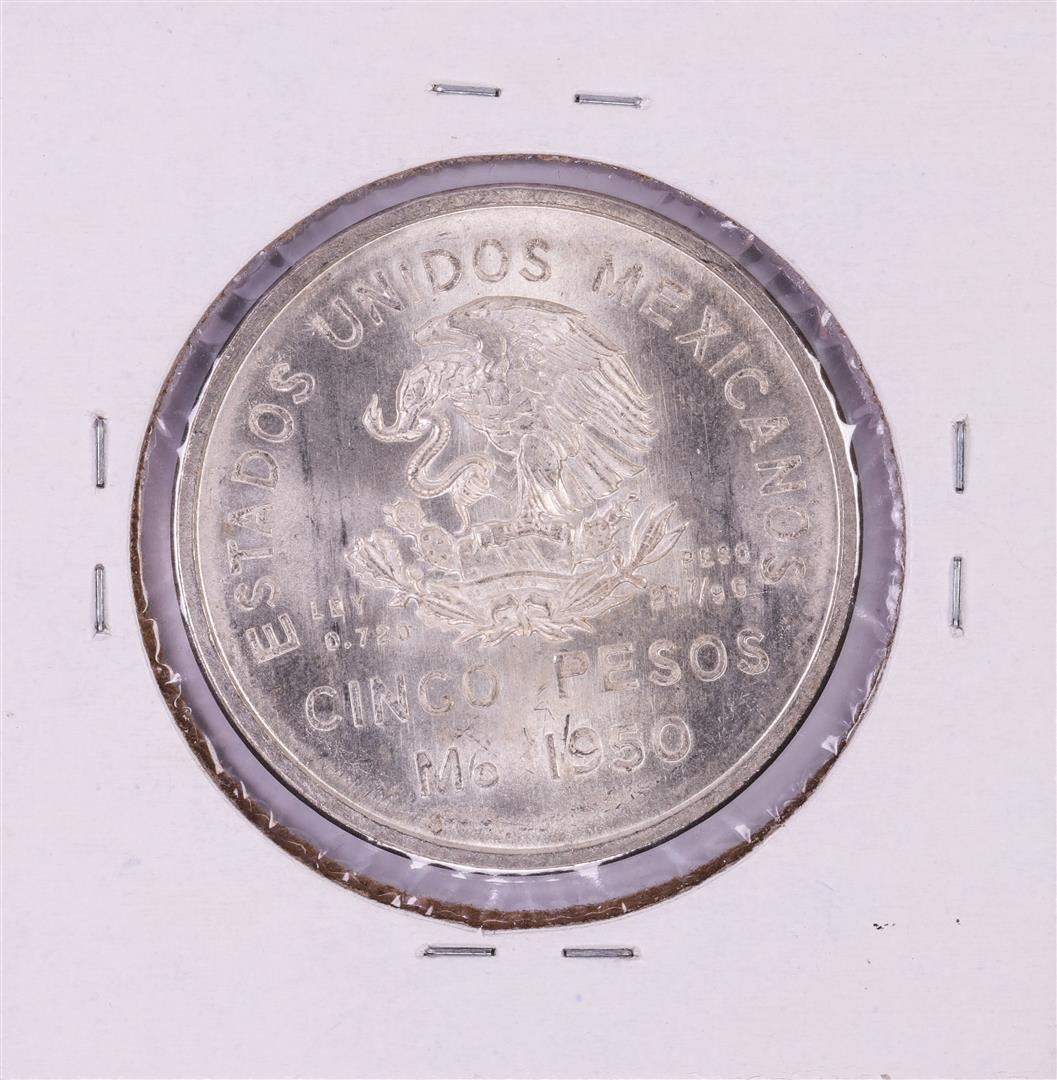 One 1950 Mexico 5 Pesos Silver Coin Great Toning.
