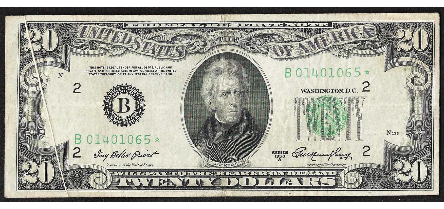 One 1950A $20 Federal Reserve STAR Note Gutter Fold ERROR.