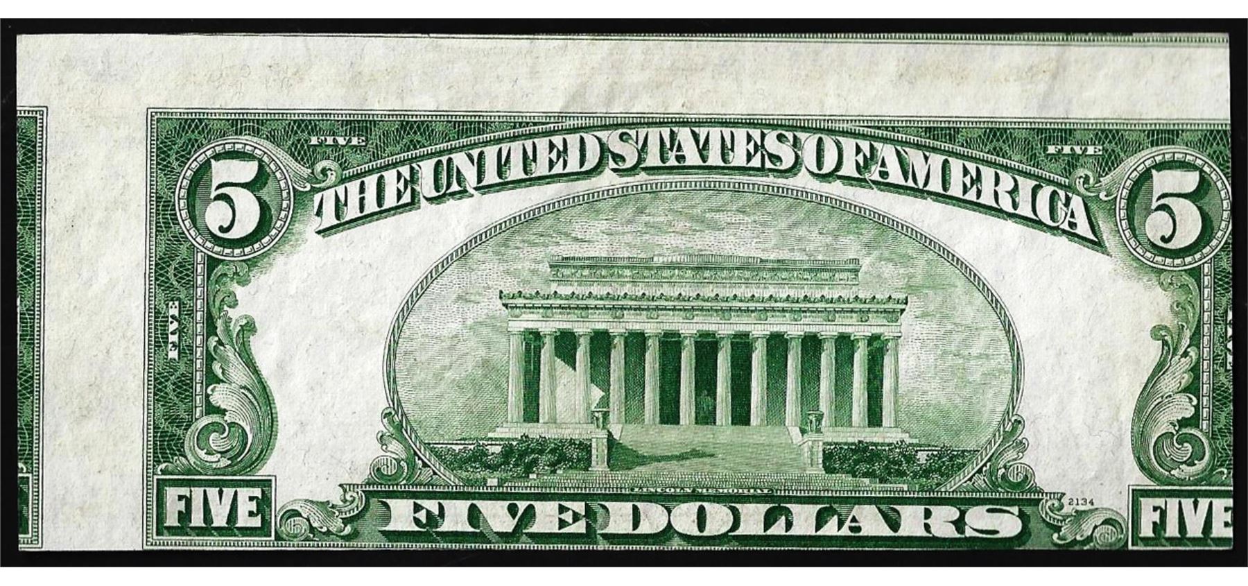 1950A $5 Federal Reserve Note Chicago Misaligned Back Print Error