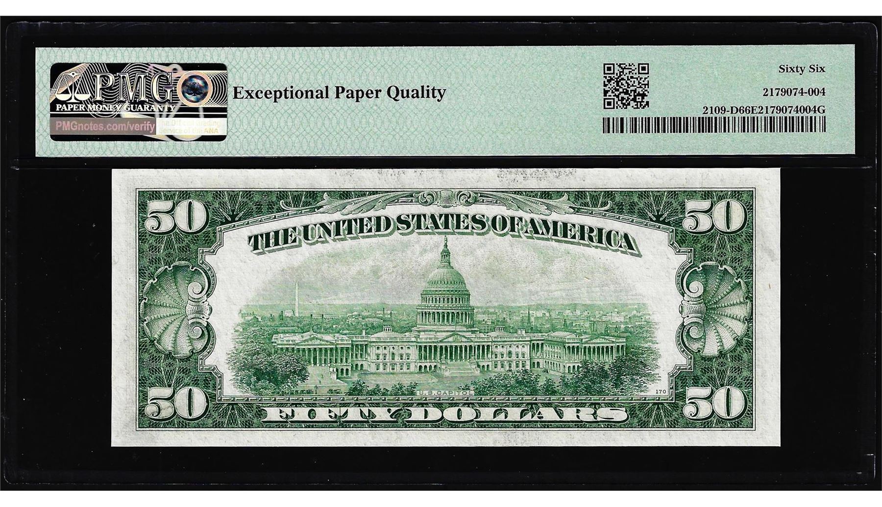 One 1950B $50 Federal Reserve Note Cleveland Fr.2109-D PMG Gem Uncirculated 66EPQ. PMG Certified.