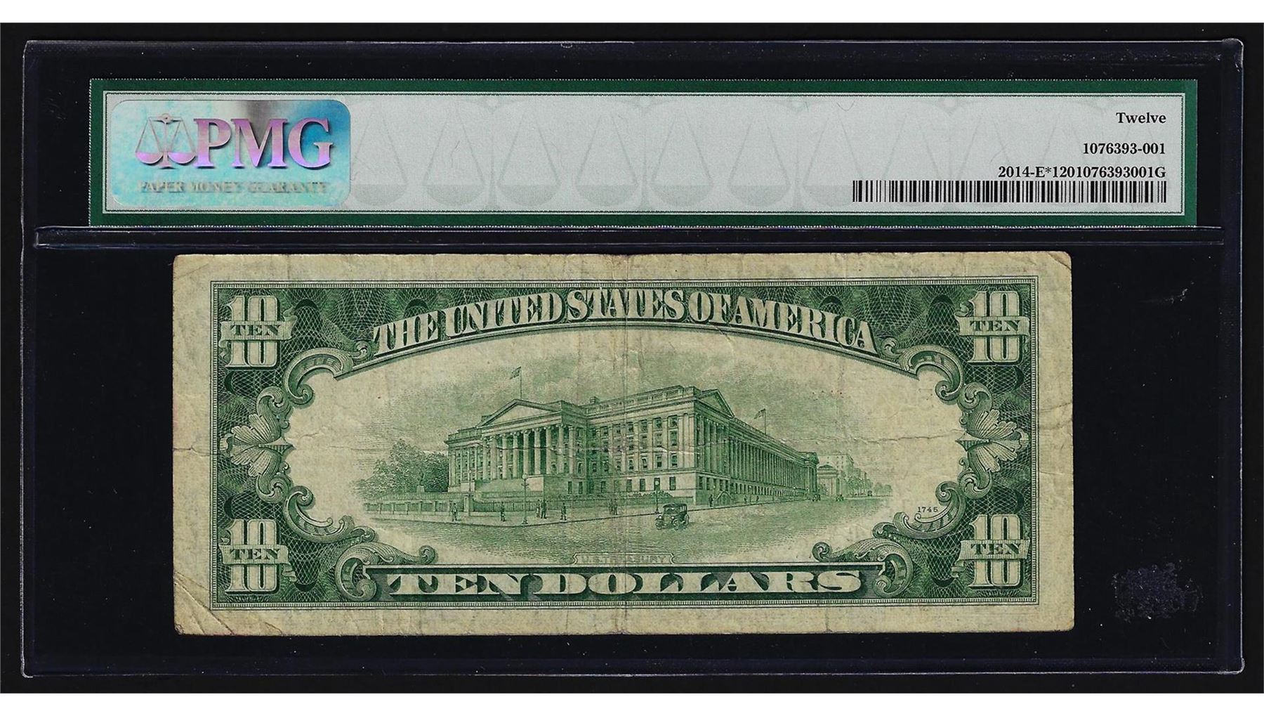One 1950D $10 Federal Reserve STAR Note Mismatched Serial Number ERROR PMG F12. PMG Certified.