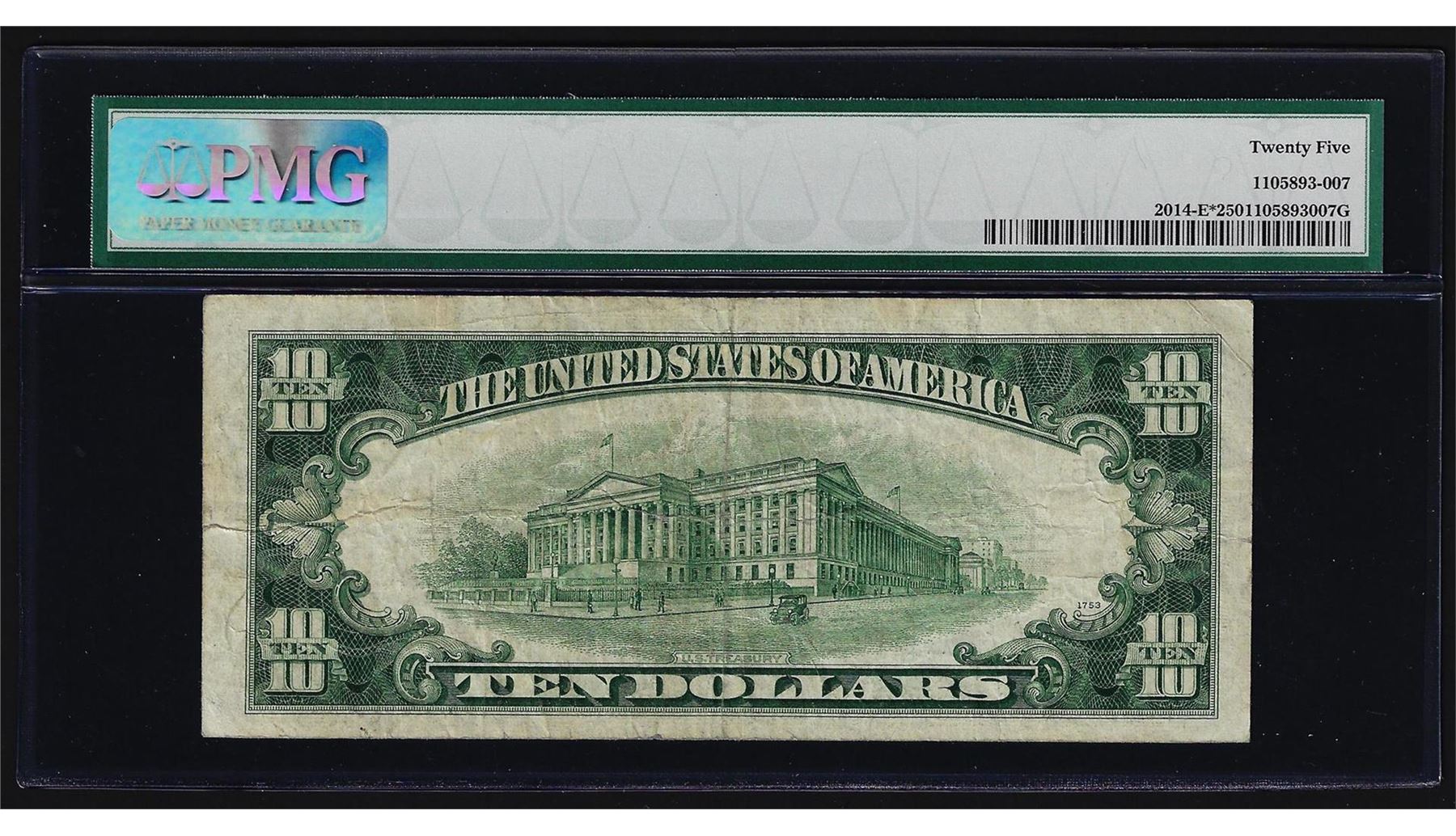One 1950D $10 Federal Reserve STAR Note Mismatched Serial Number ERROR PMG VF25. PMG Certified.
