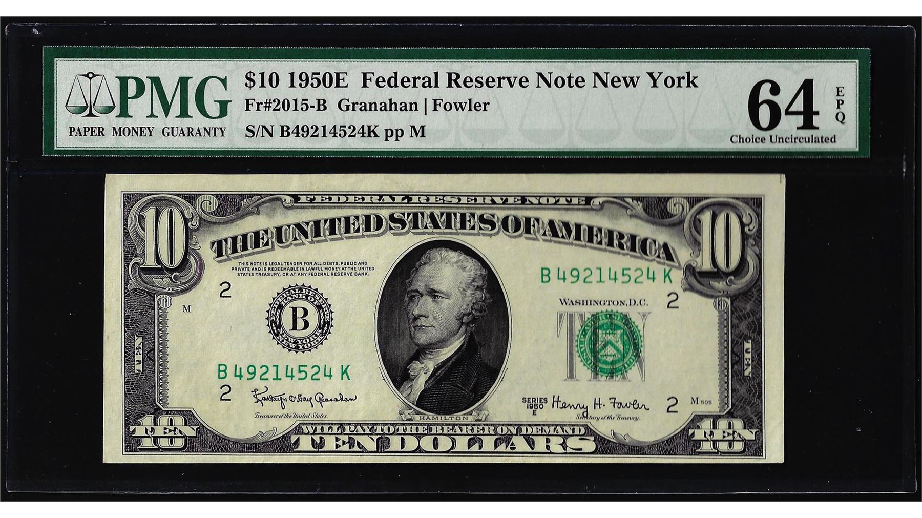 1950E $10 Federal Reserve Note New York Fr.2015-B PMG Choice Uncirculated 64EPQ