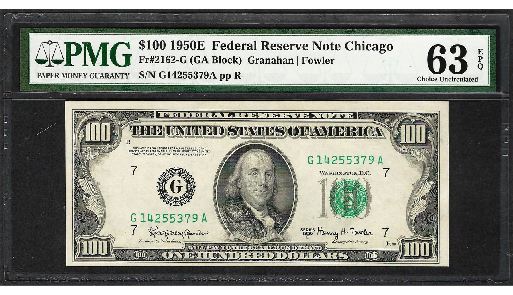 1950E $100 Federal Reserve Note Chicago Fr.2162-G PMG Choice Uncirculated 63EPQ