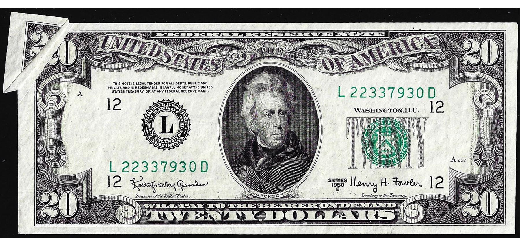 1950E $20 Federal Reserve Gutter fold Error Note San Francisco