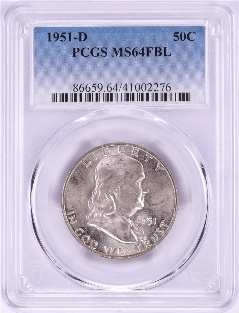 One 1951-D Franklin Half Dollar Coin PCGS MS64FBL. PCGS Graded.
