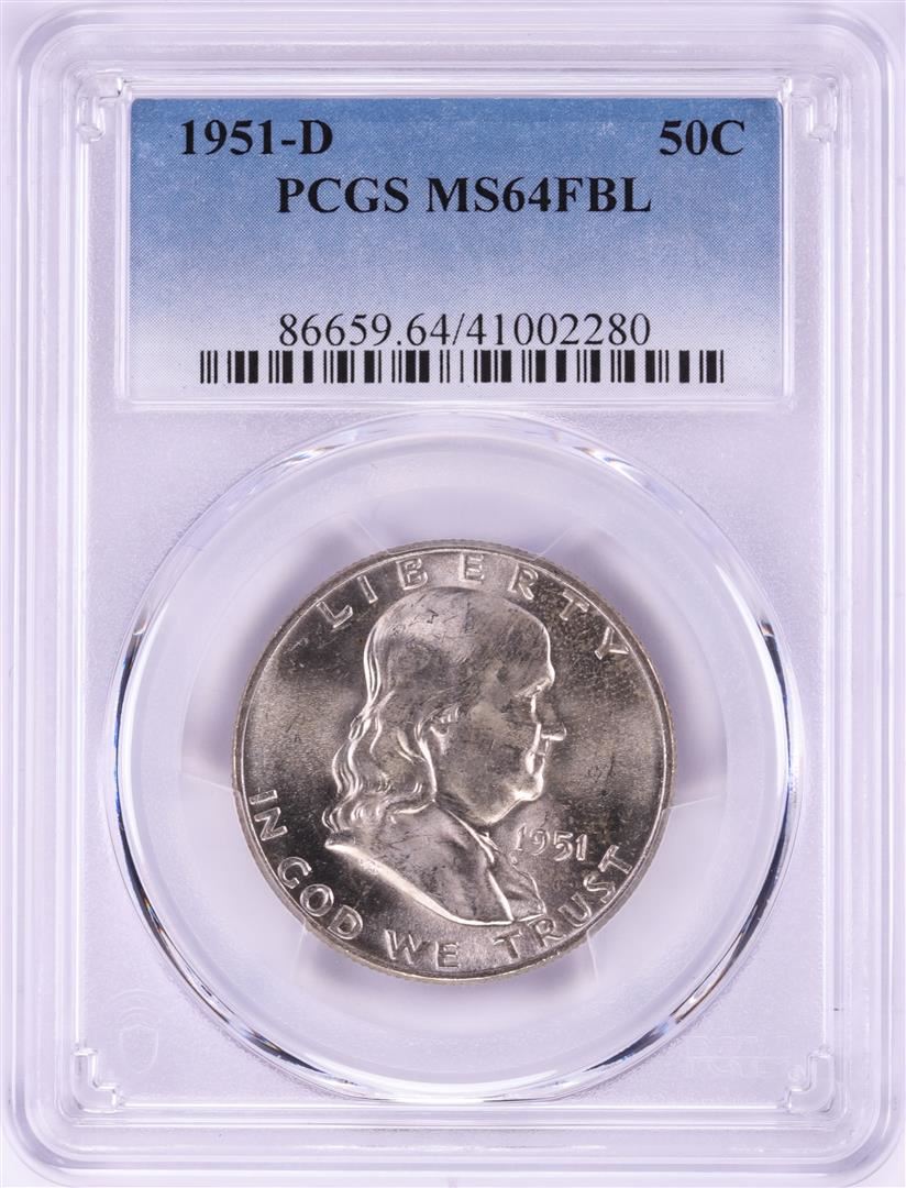One 1951-D Franklin Half Dollar Coin PCGS MS64FBL. PCGS Graded.