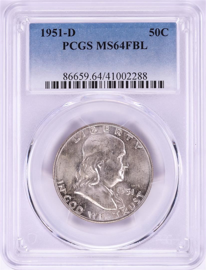 One 1951-D Franklin Half Dollar Coin PCGS MS64FBL. PCGS Graded.
