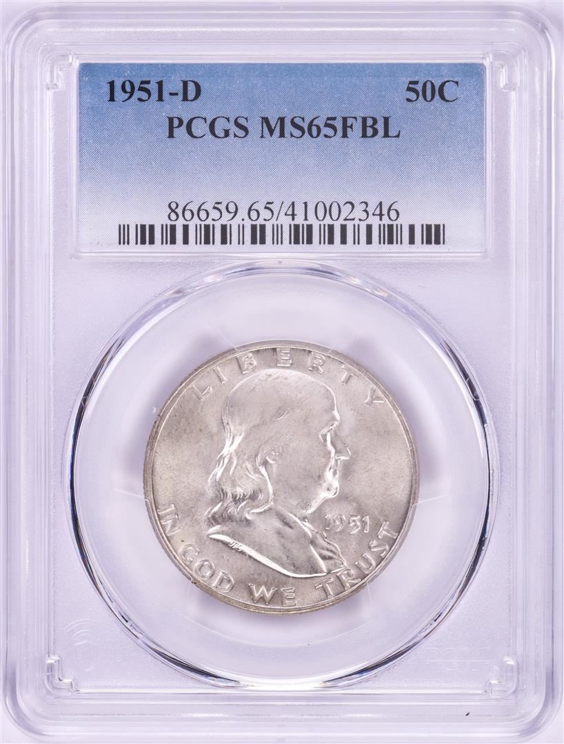 One 1951-D Franklin Half Dollar Coin PCGS MS65FBL. PCGS Graded.