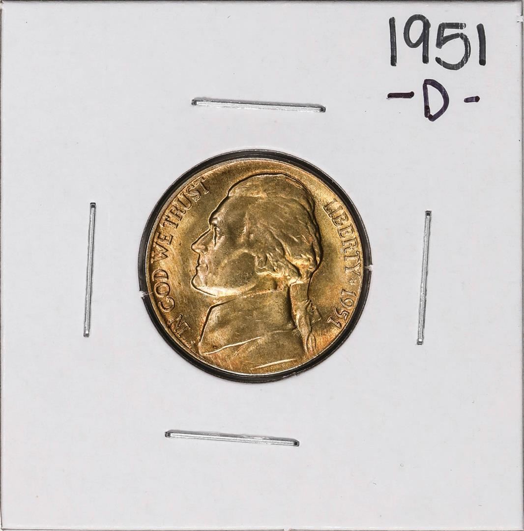 One 1951-D Jefferson Nickel Coin Nice Toning.