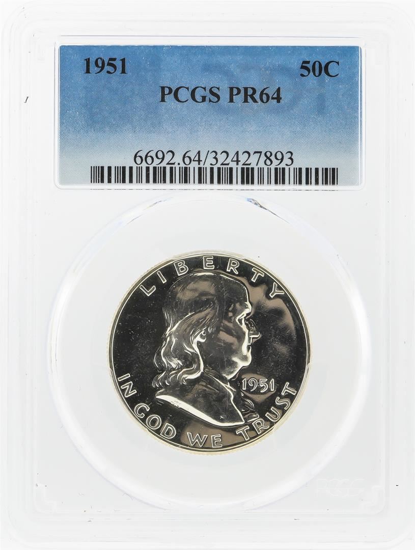 One 1951 Franklin Half Dollar Coin PCGS Graded PR64. PCGS Graded.