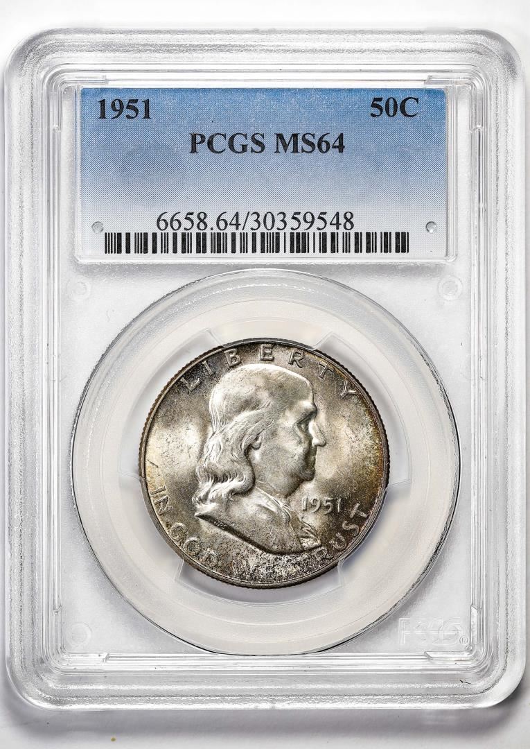 One 1951 Franklin Half Dollar Coin PCGS MS64 . PCGS Graded.