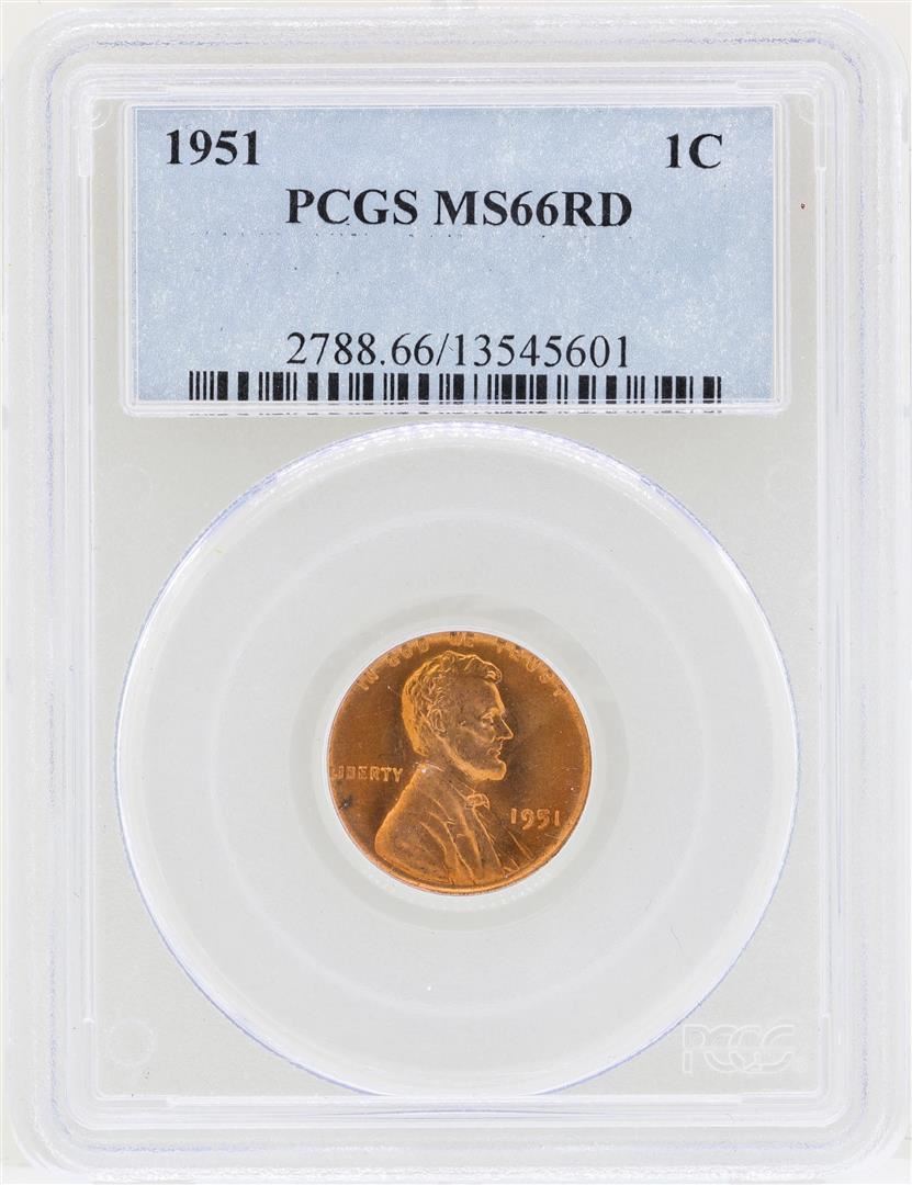 One 1951 Lincoln Wheat Penny Coin PCGS MS66RD. PCGS Graded.