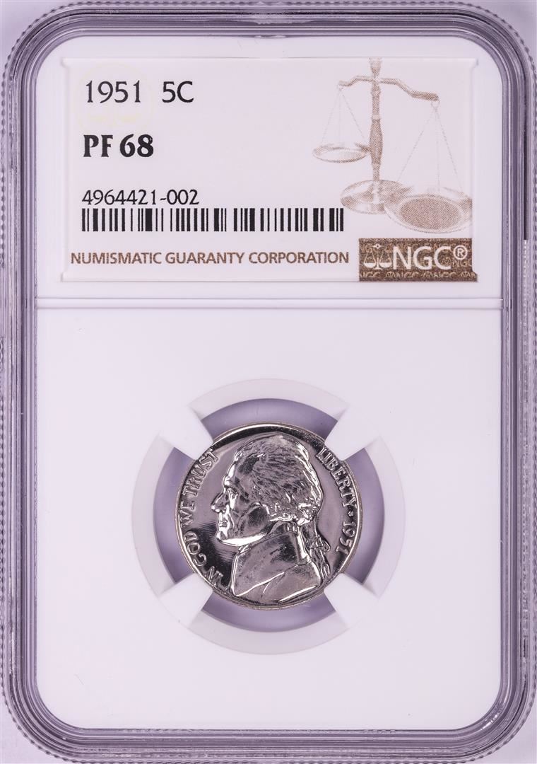 One 1951 Proof Jefferson Nickel Coin NGC PF68. NGC Certified.