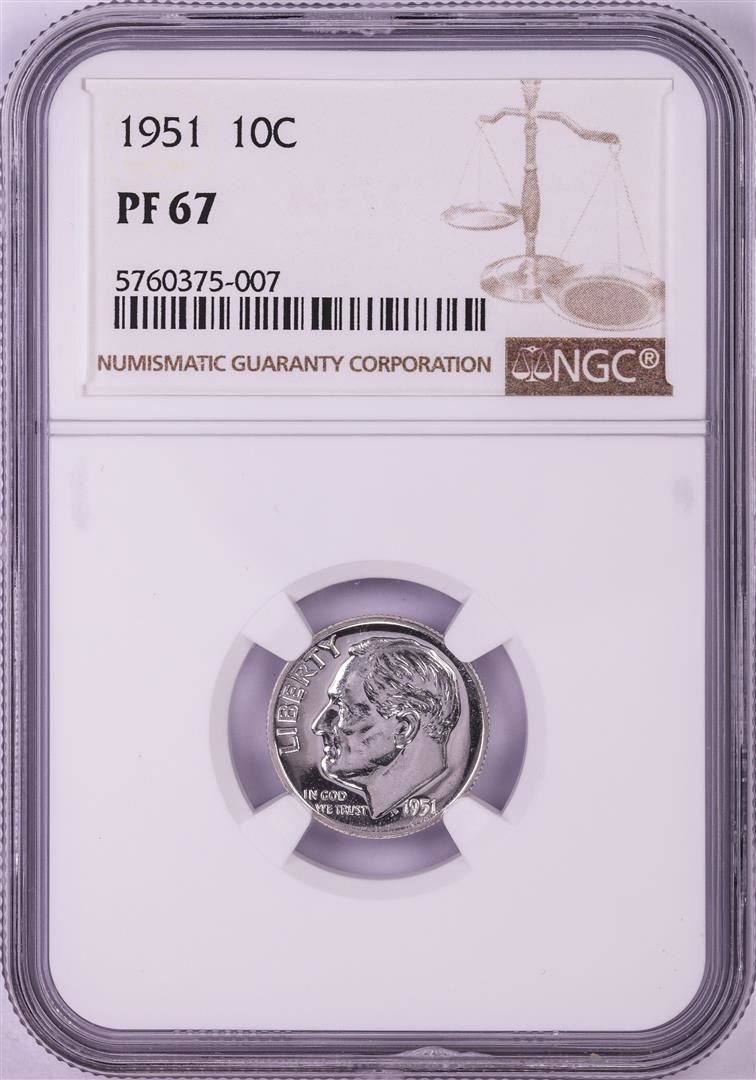One 1951 Proof Roosevelt Dime Coin NGC PF67. NGC Certified.