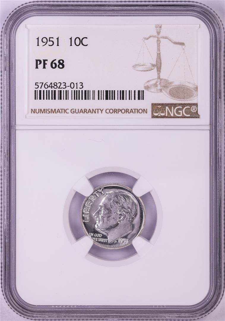 One 1951 Proof Roosevelt Dime Coin NGC PF68. NGC Certified.