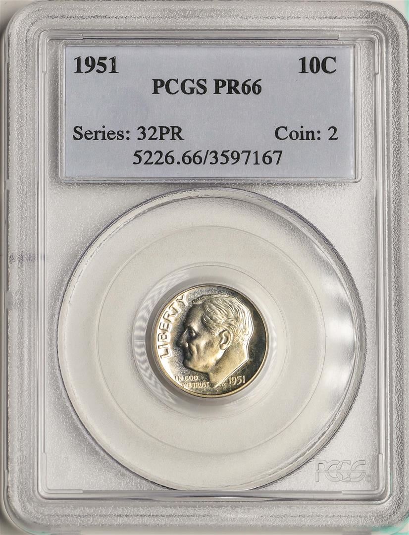 One 1951 Proof Roosevelt Dime Coin PCGS PR66. PCGS Graded.
