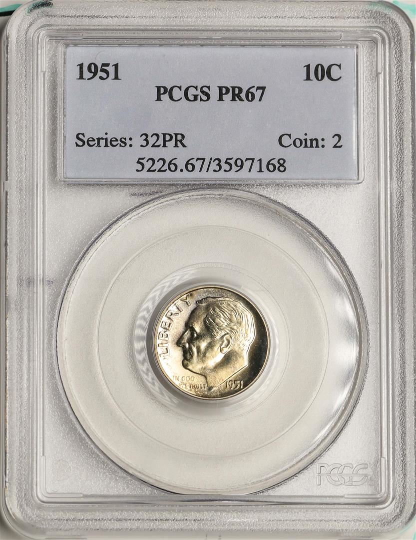 One 1951 Proof Roosevelt Dime Coin PCGS PR67. PCGS Graded.