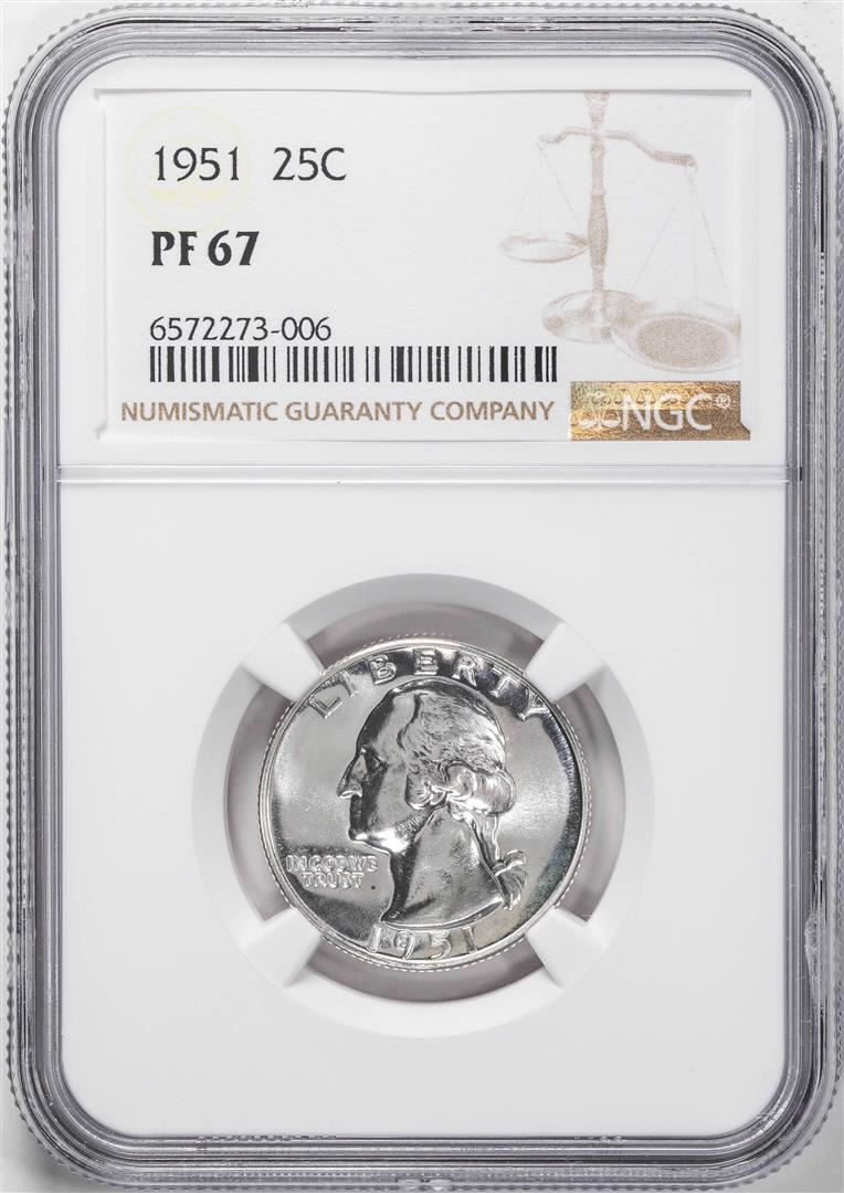 One 1951 Proof Washington Quarter Coin NGC PF67. NGC Certified.