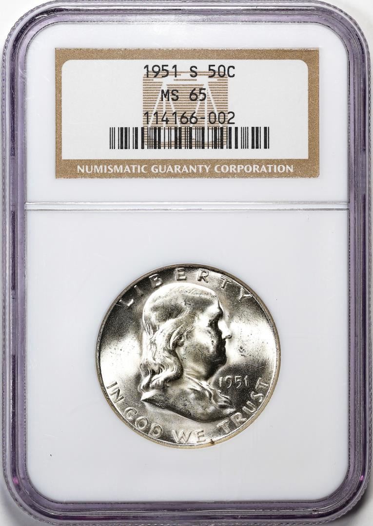 One 1951-S Franklin Half Dollar Coin NGC MS65. NGC Certified.
