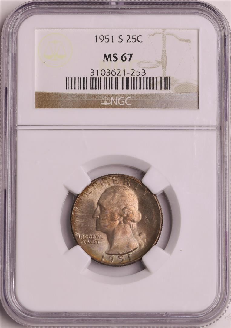 One 1951-S Washington Quarter Coin NGC MS67. NGC Certified.