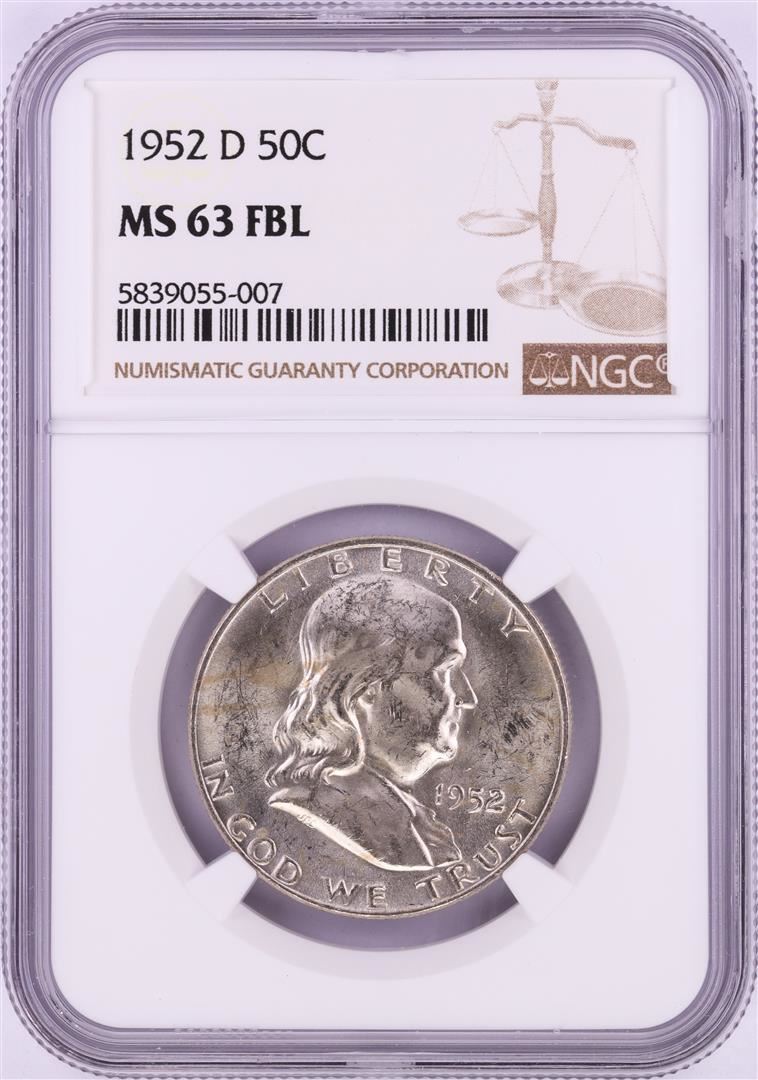 One 1952-D Franklin Half Dollar Coin NGC MS63FBL. NGC Certified.