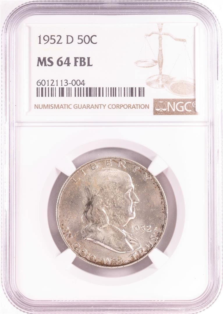 One 1952-D Franklin Half Dollar Coin NGC MS64FBL. NGC Certified.