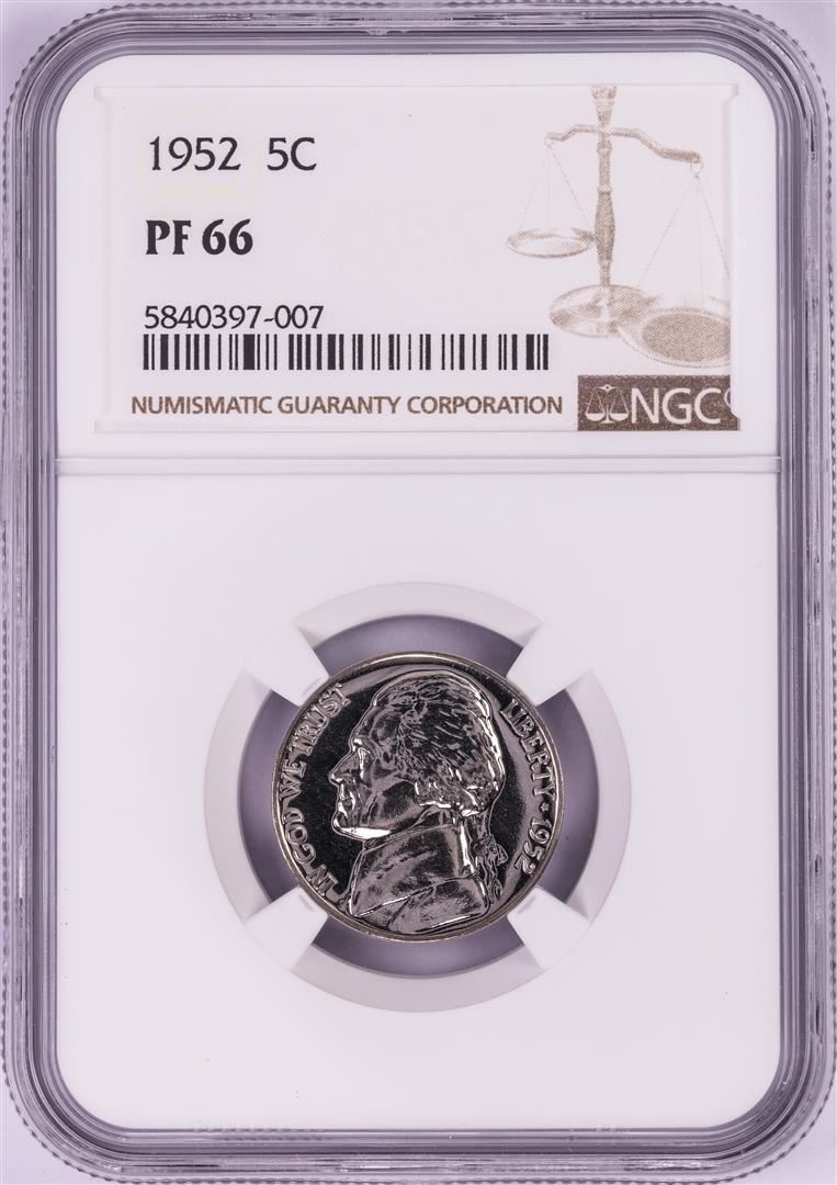 One 1952 Proof Jefferson Nickel Coin NGC PF66. NGC Certified.