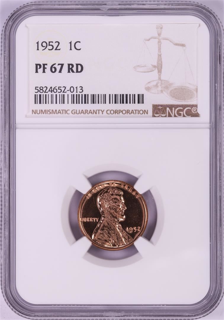 One 1952 Proof Lincoln Wheat Cent Coin NGC PF67RD. NGC Certified.