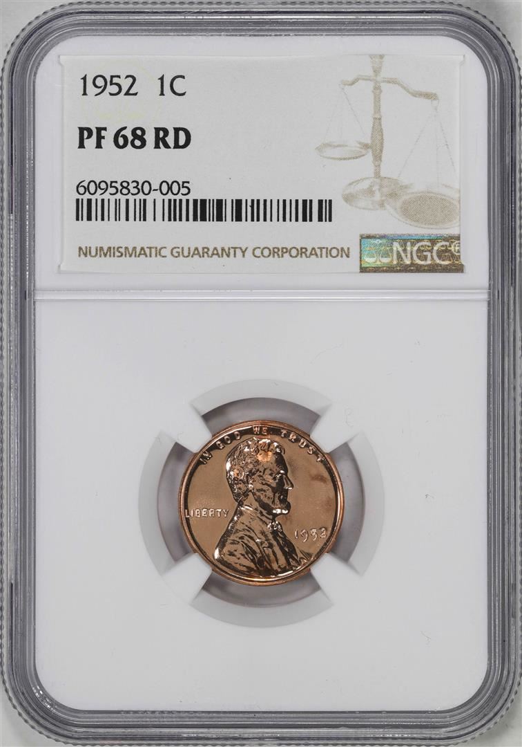 One 1952 Proof Lincoln Wheat Cent Coin NGC PF68RD. NGC Certified.