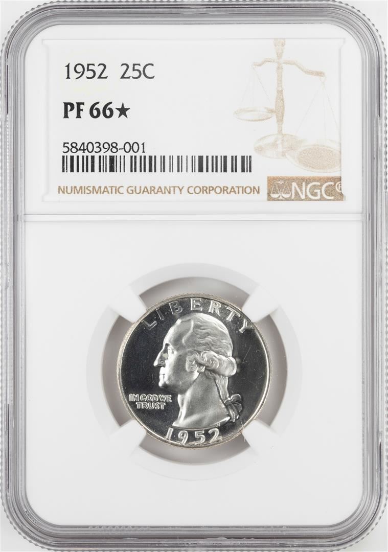 One 1952 Proof Washington Quarter Coin NGC PF66* Star. NGC Certified.