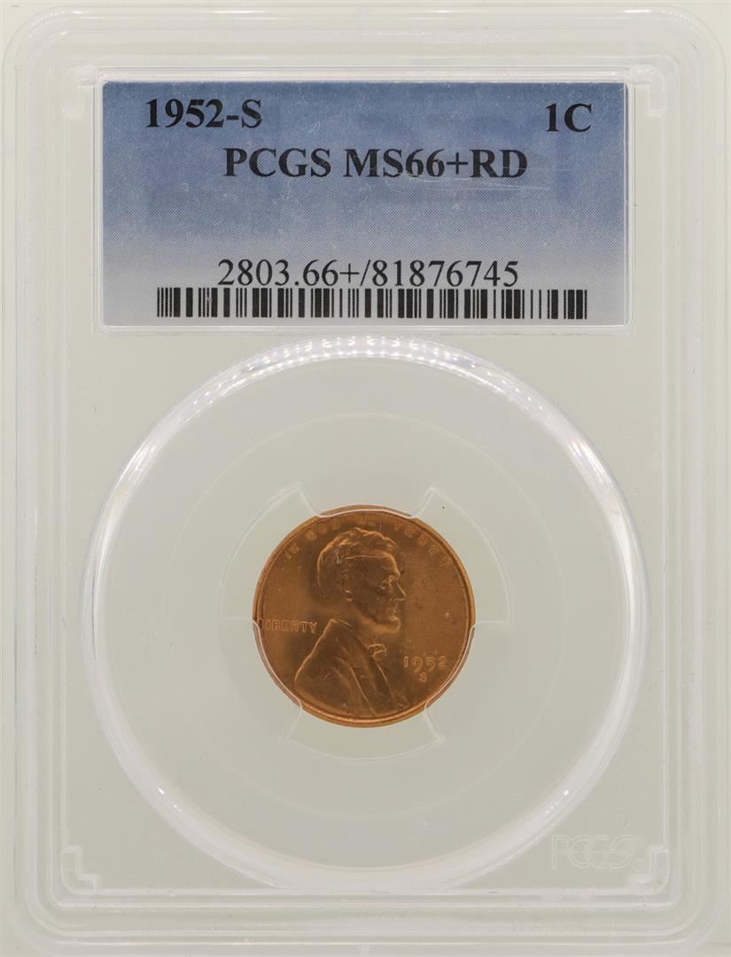 One 1952-S Lincoln Wheat Cent Coin PCGS MS66+RD. PCGS Graded.