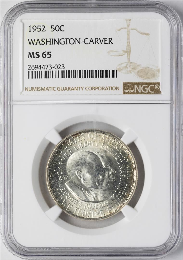 One 1952 Washington-Carver Commemorative Half Dollar Coin NGC MS65. NGC Certified.