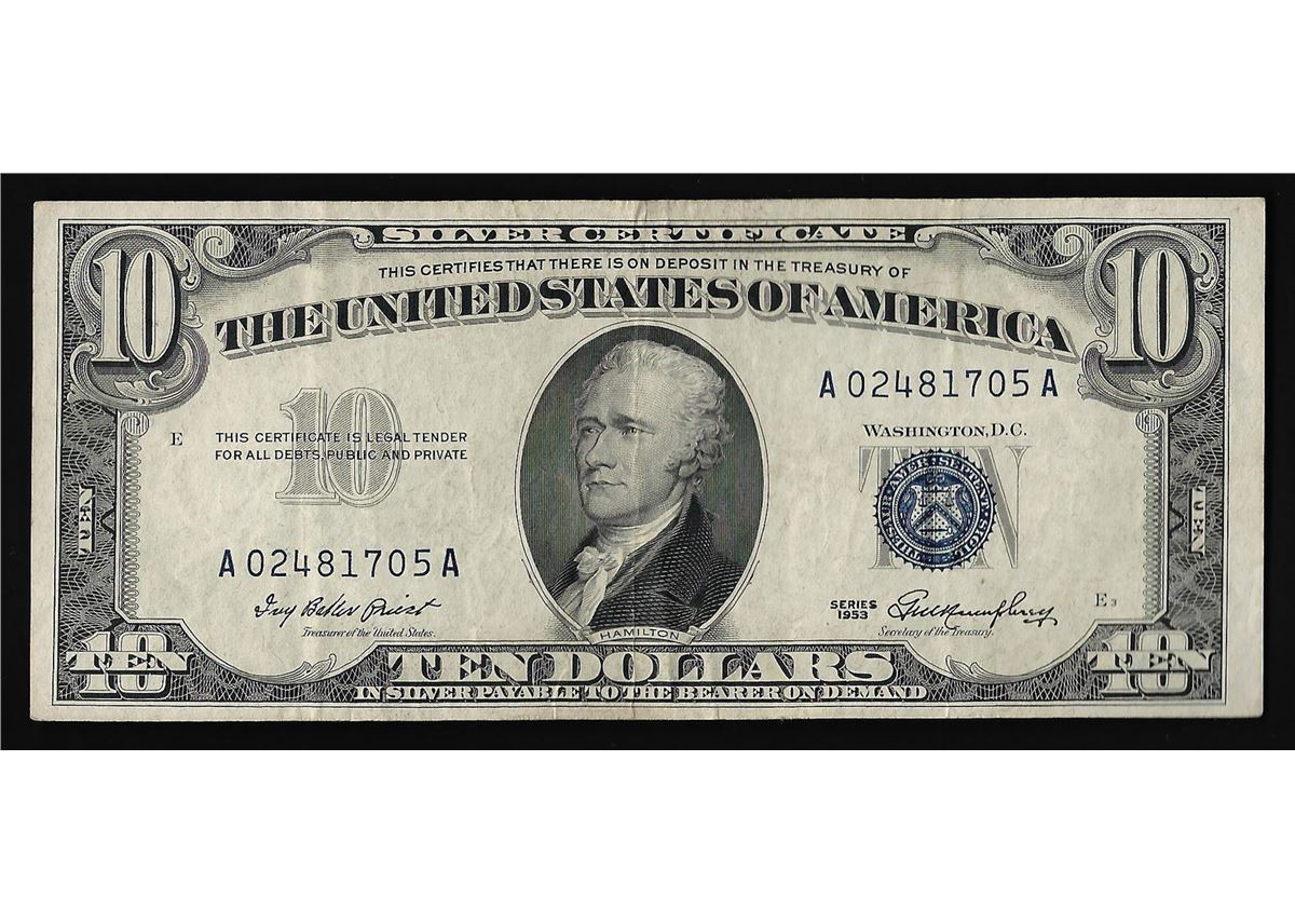 One 1953 $10 Silver Certificate Note.