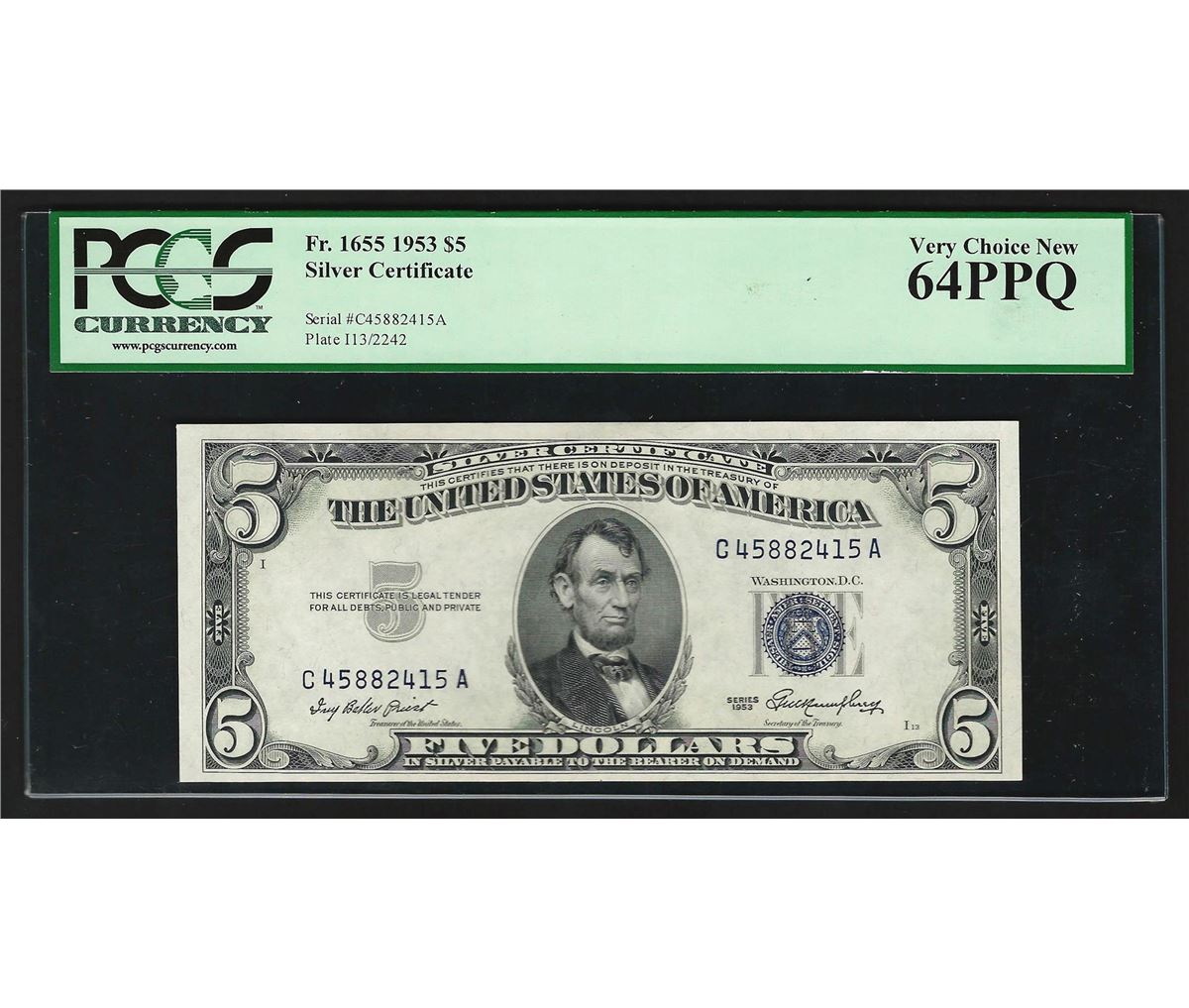 1953 $5 Silver Certificate Note PCGS Very Choice New 64PPQ