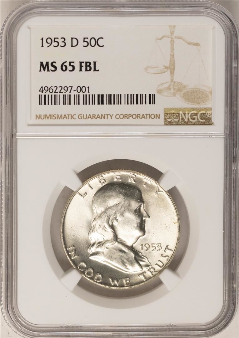 One 1953-D Franklin Half Dollar Coin NGC MS65FBL. NGC Certified.