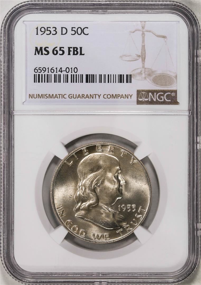 One 1953-D Franklin Half Dollar Coin NGC MS65FBL. NGC Certified.