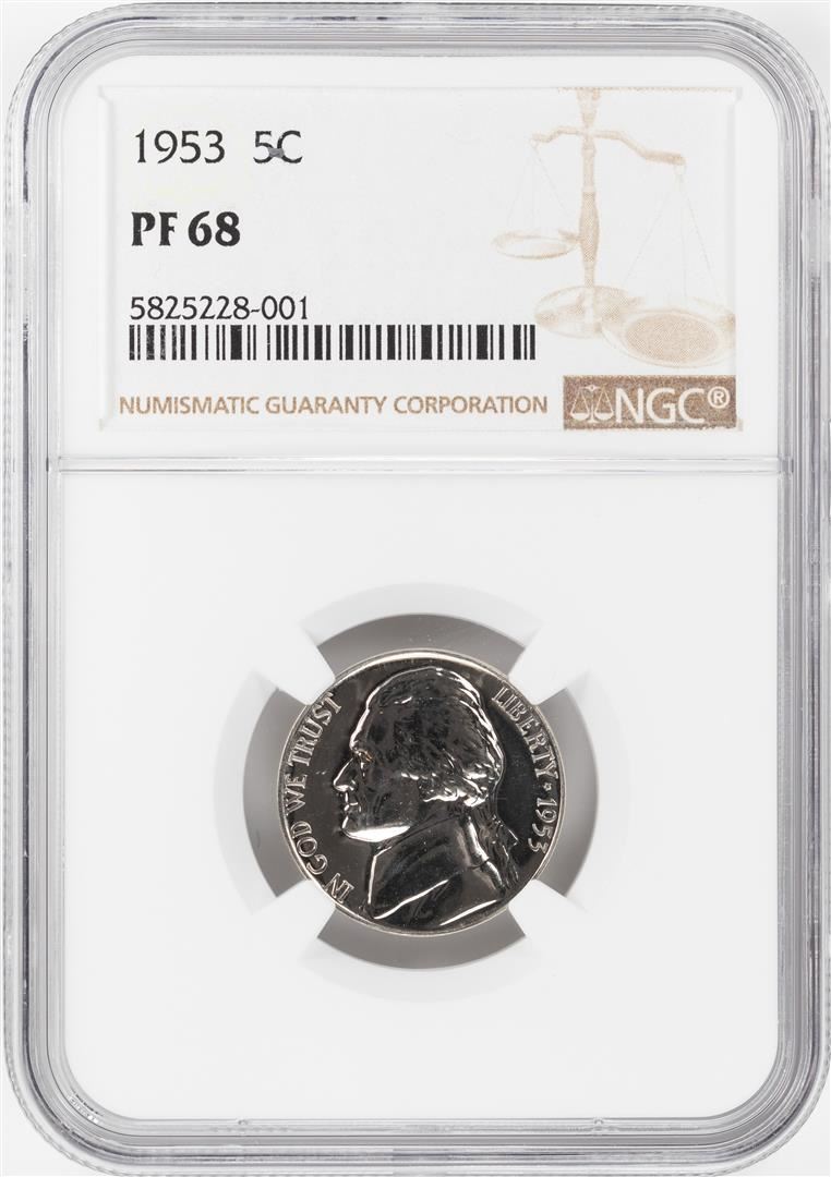 One 1953 Proof Jefferson Nickel Coin NGC PF68. NGC Certified.