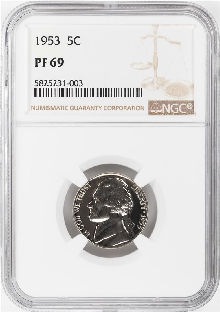 One 1953 Proof Jefferson Nickel Coin NGC PF69. NGC Certified.