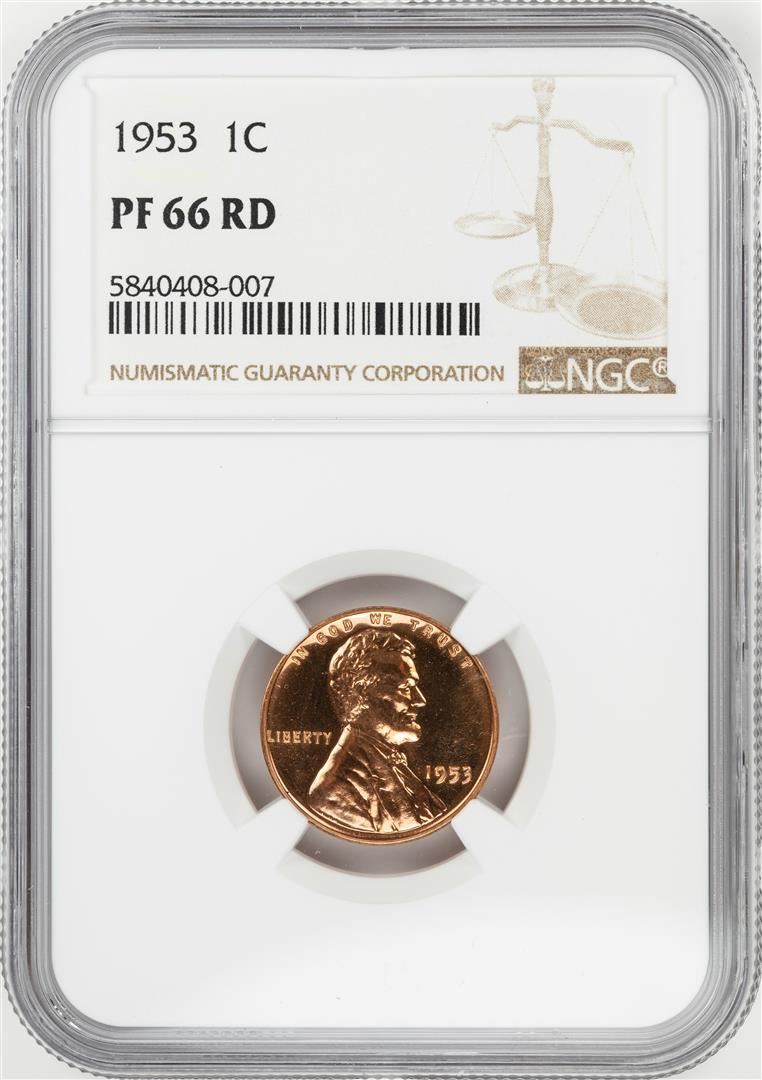 One 1953 Proof Lincoln Wheat Cent Coin NGC PF66RD. NGC Certified.