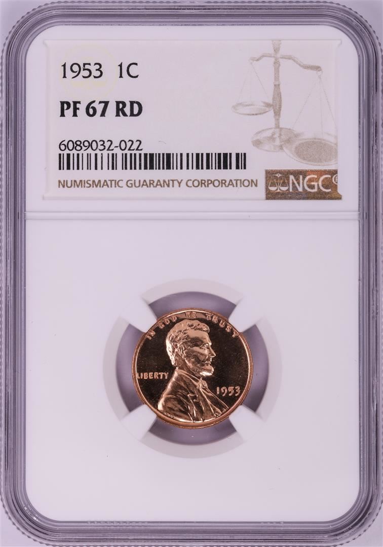 One 1953 Proof Lincoln Wheat Cent Coin NGC PF67RD. NGC Certified.
