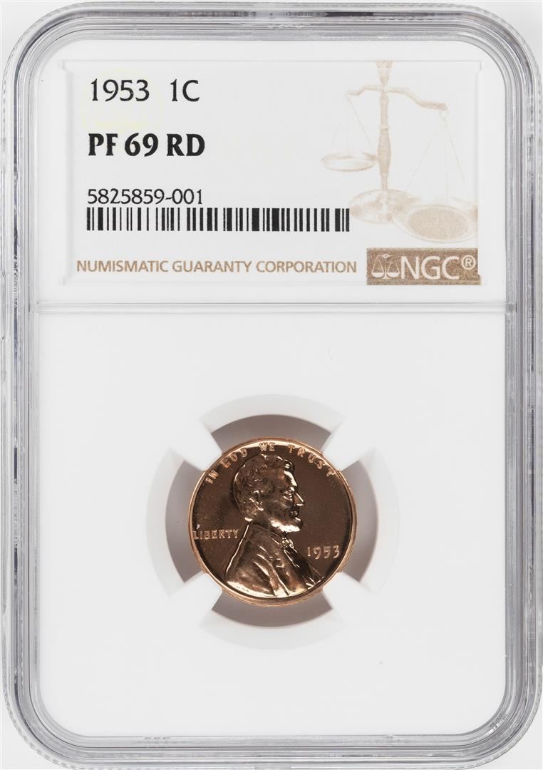One 1953 Proof Lincoln Wheat Cent Coin NGC PF69RD. NGC Certified.