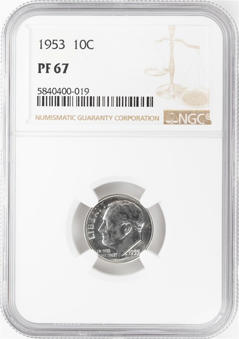 One 1953 Proof Roosevelt Dime Coin NGC PF67. NGC Certified.