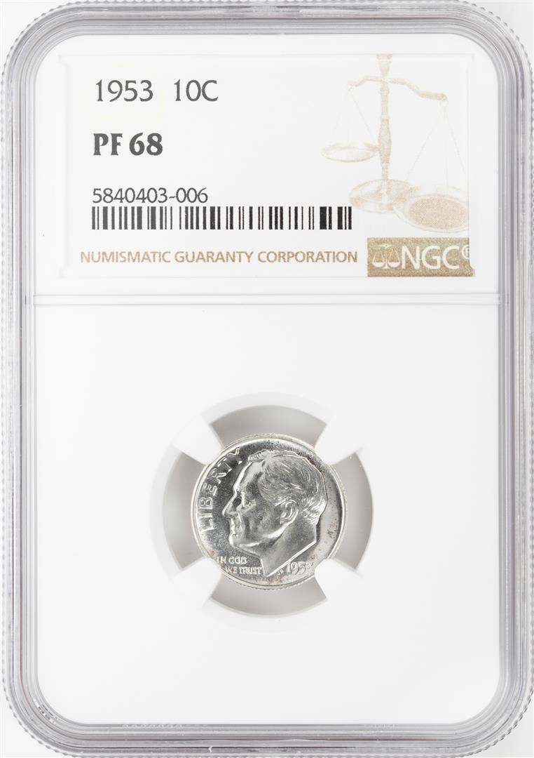 One 1953 Proof Roosevelt Dime Coin NGC PF68. NGC Certified.