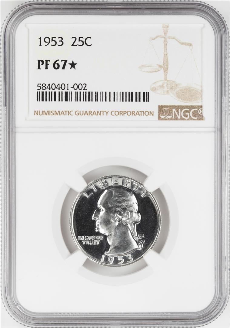 One 1953 Proof Washington Quarter Coin NGC PF67* Star. NGC Certified.