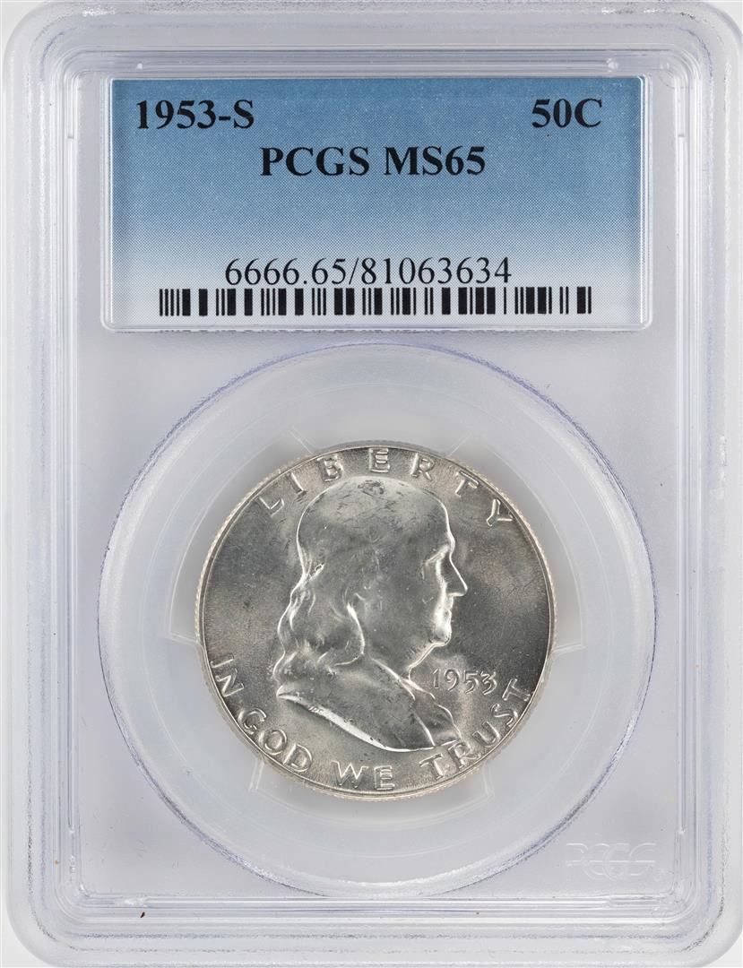 One 1953-S Franklin Half Dollar Coin PCGS MS65. PCGS Graded.