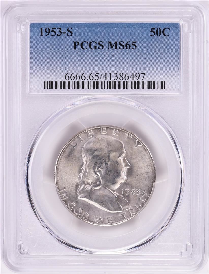 One 1953-S Franklin Half Dollar Coin PCGS MS65. PCGS Graded.