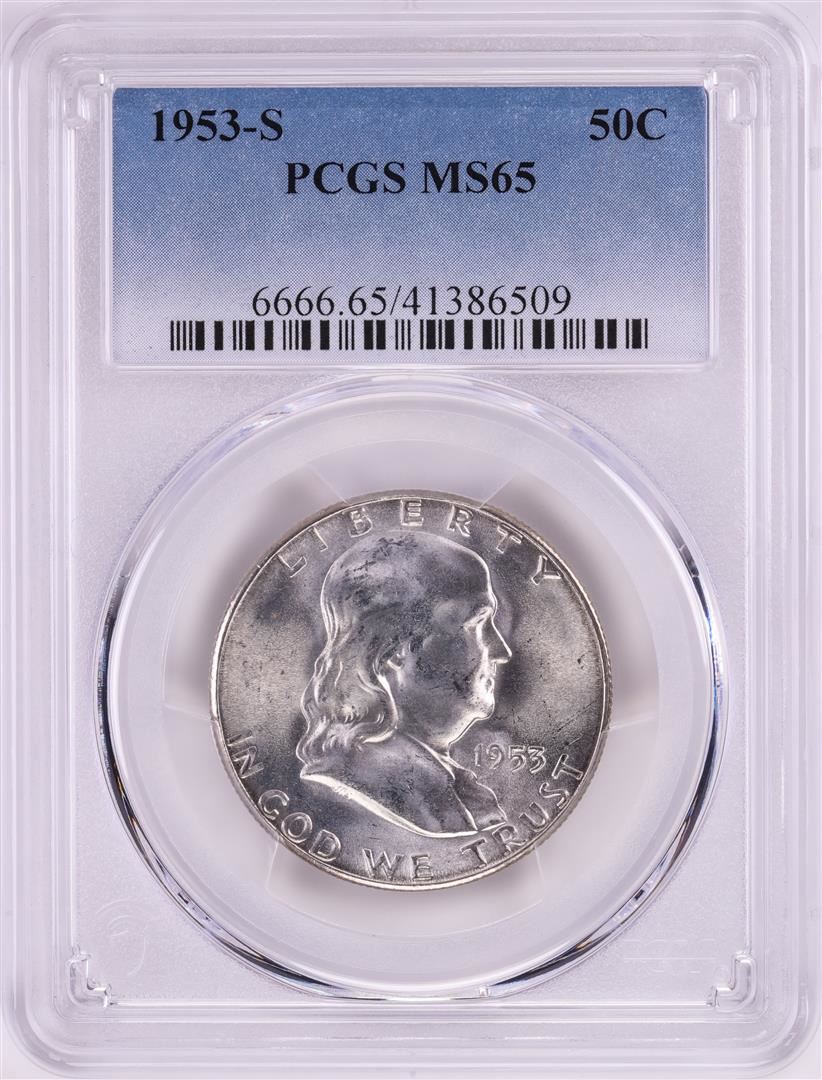 One 1953-S Franklin Half Dollar Coin PCGS MS65. PCGS Graded.