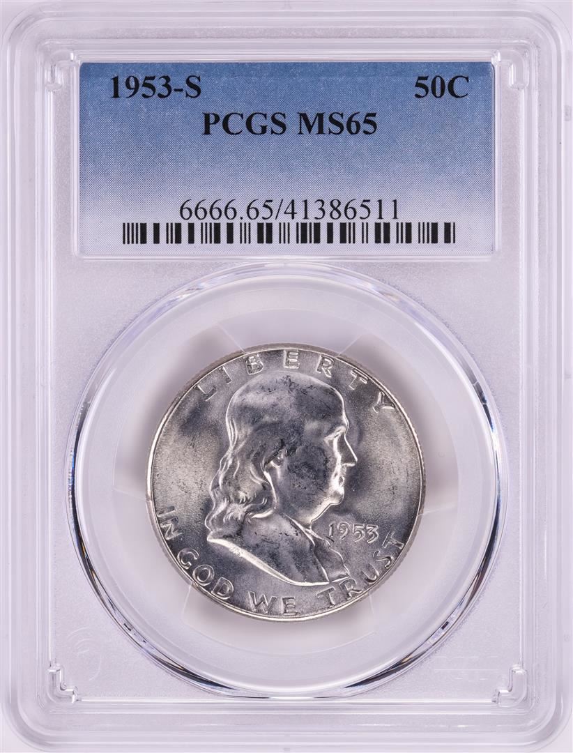 One 1953-S Franklin Half Dollar Coin PCGS MS65. PCGS Graded.